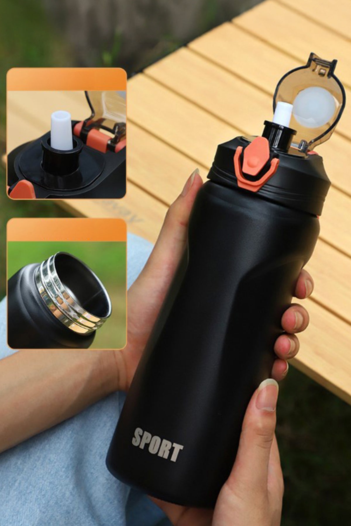 Black Stainless Steel Insulated Sports Bottle - S24 - BT0005R