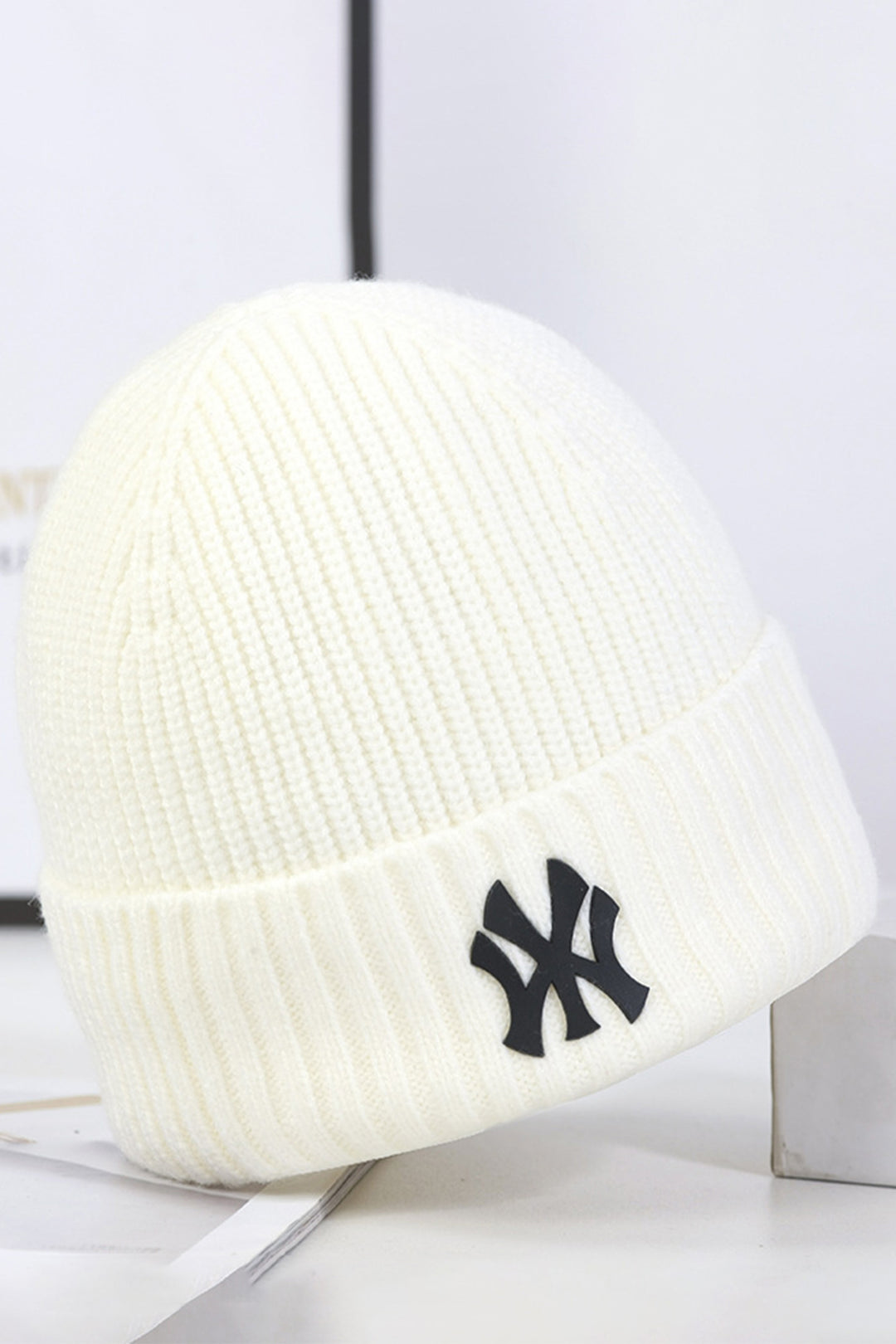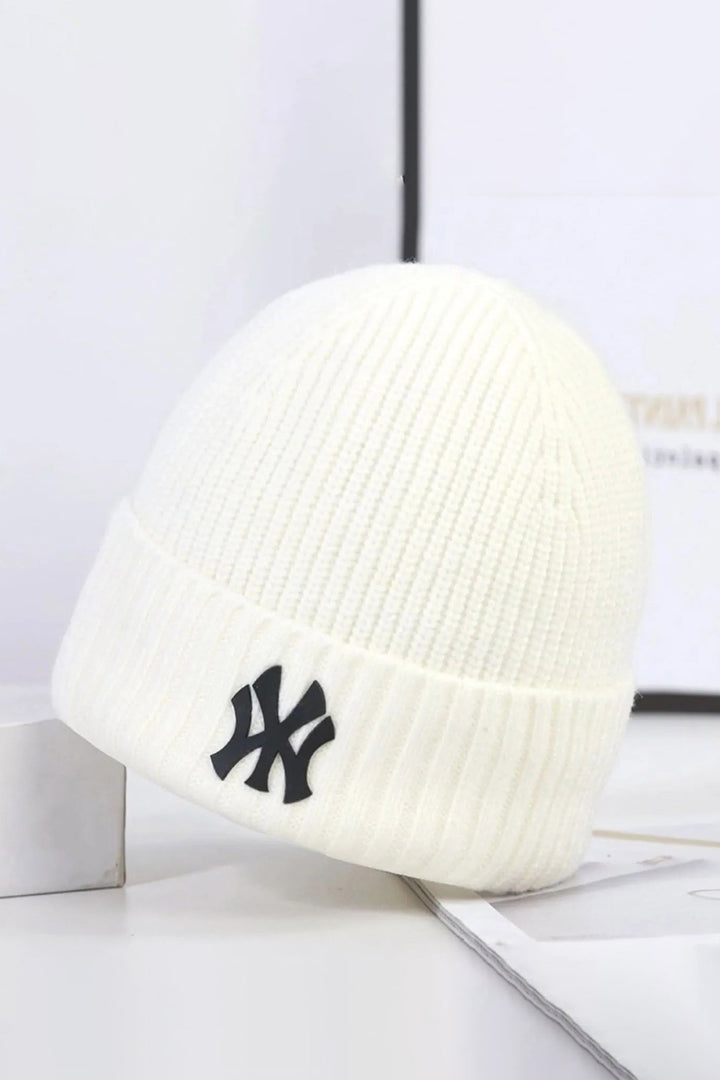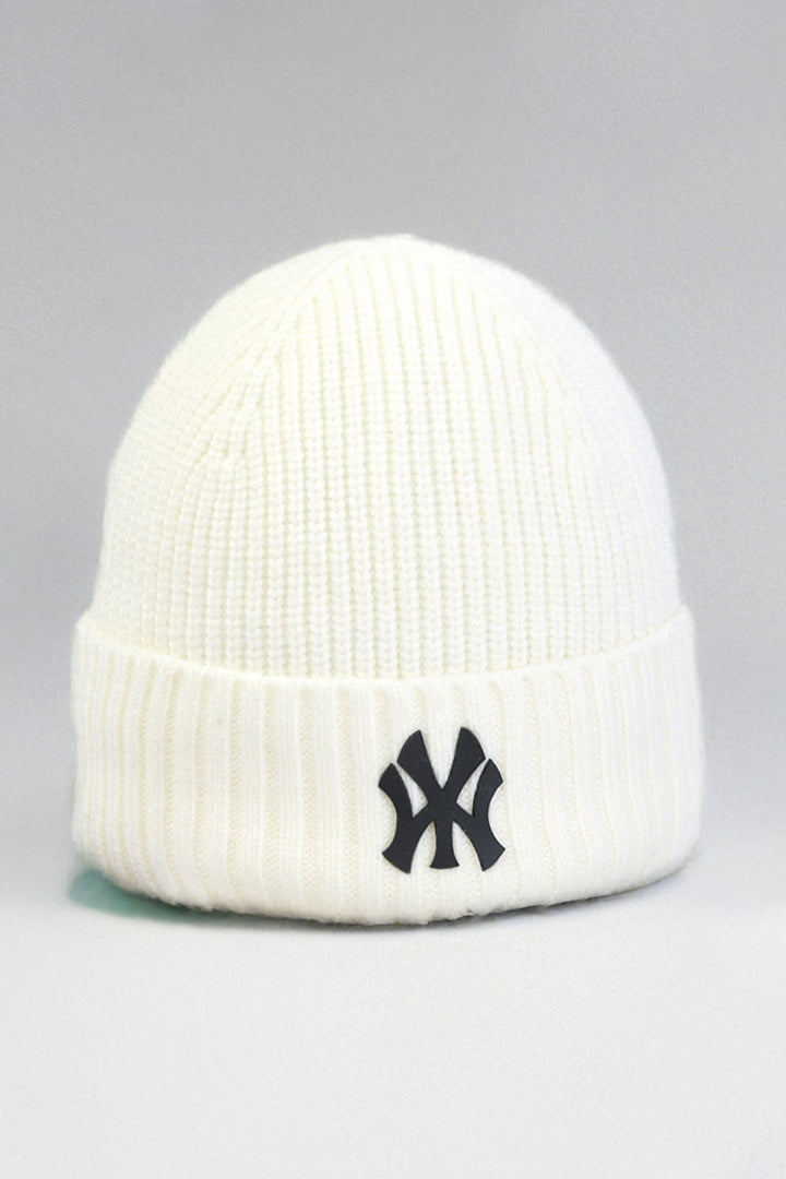 White NY Classic Knitted Beanie - W23 - UBH0027