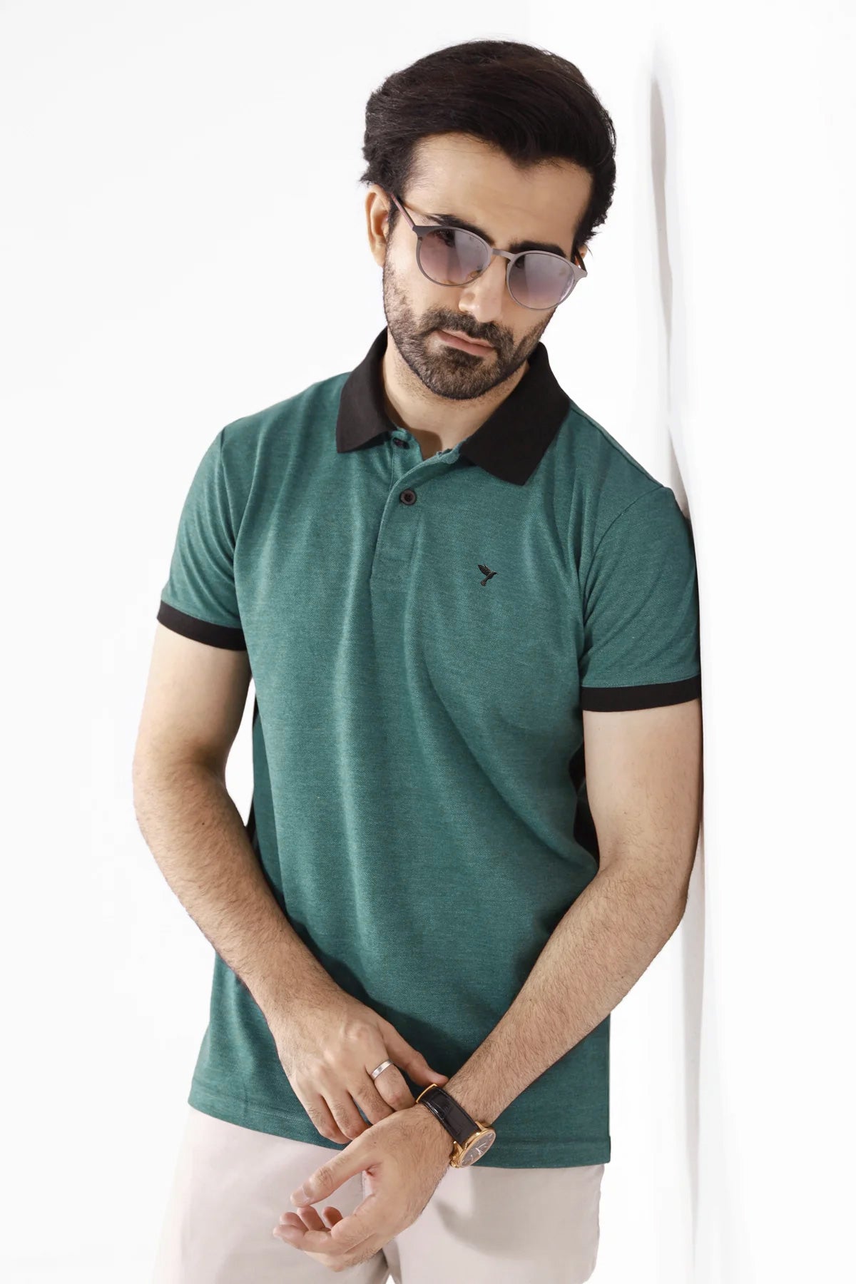 Teal Melange Pique Polo Shirt - S25 - MP0276R