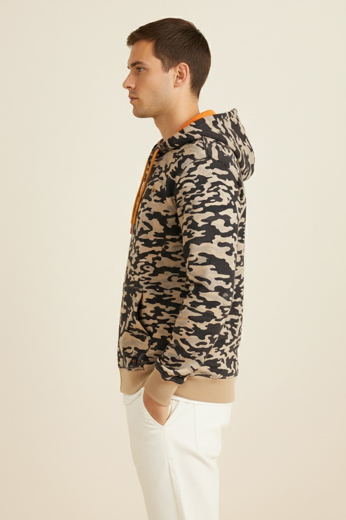Stay warm and stylish with the Nomad & Black Camo Zipper Hoodie - W23 - MH0066R. The unique camo design and durable zipper provide a modern look, while the soft fabric keeps you comfortable. Perfect for any outdoor adventure or casual outing.