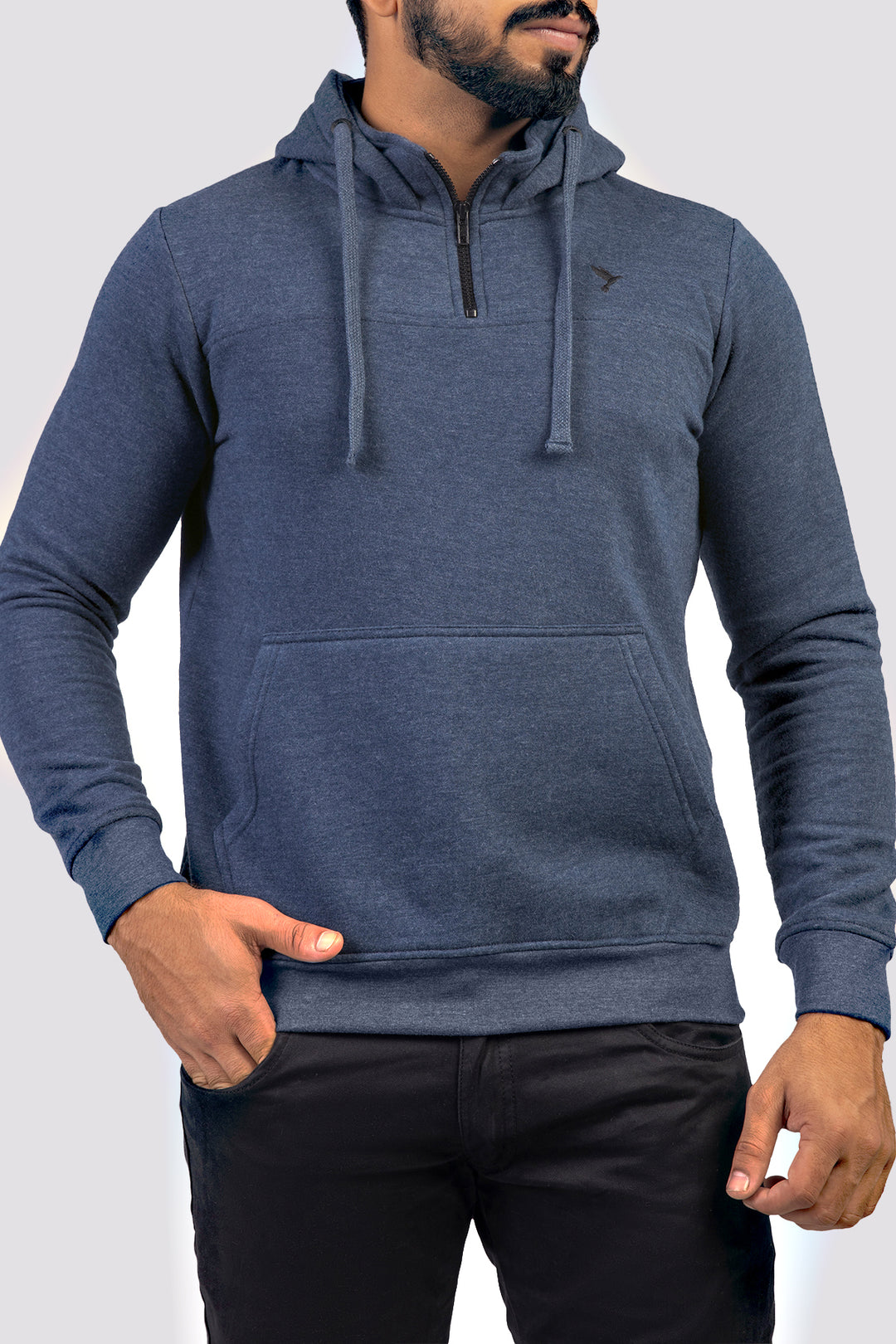 Navy Blue Melange Turtle Neck Hoodie - W23 - MH0064R