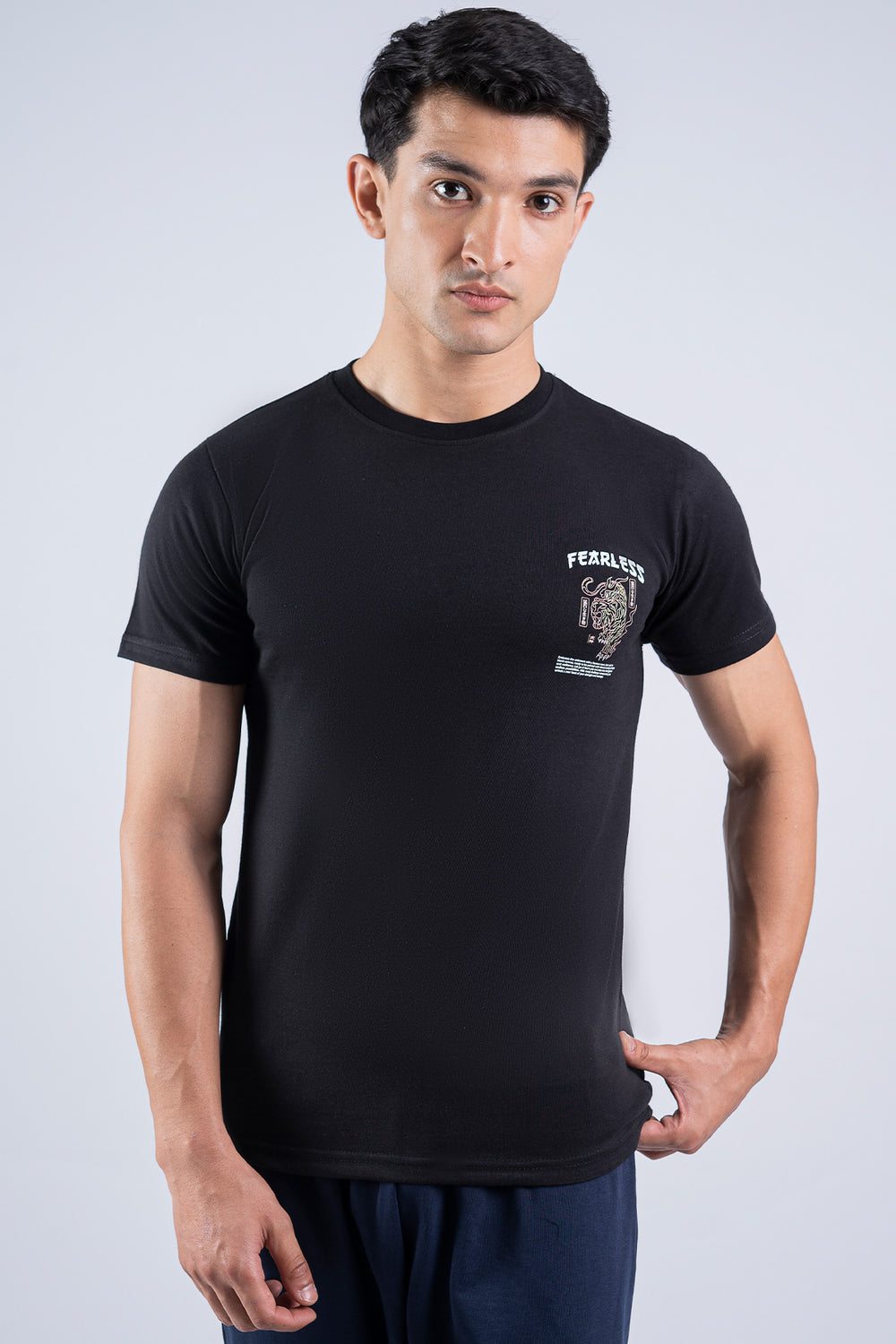 Black Fearless Graphic Crew Neck T-Shirt - S25 - MT0371R