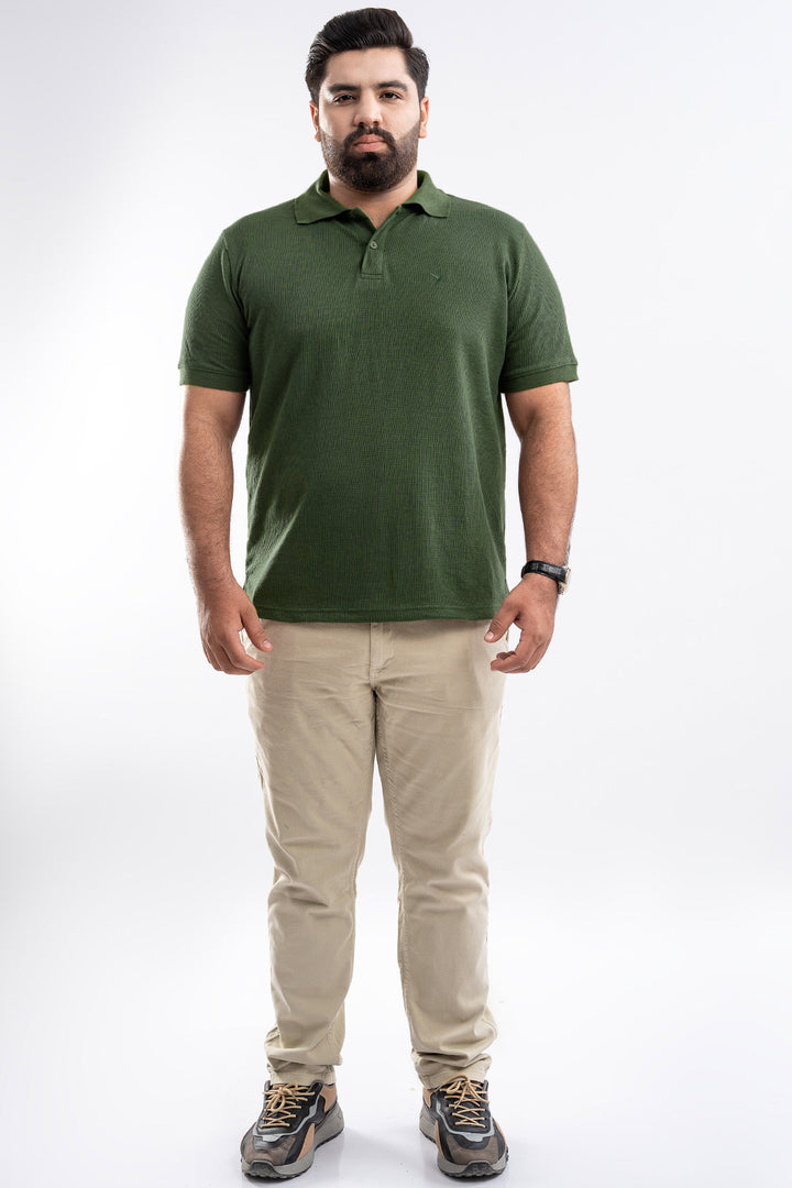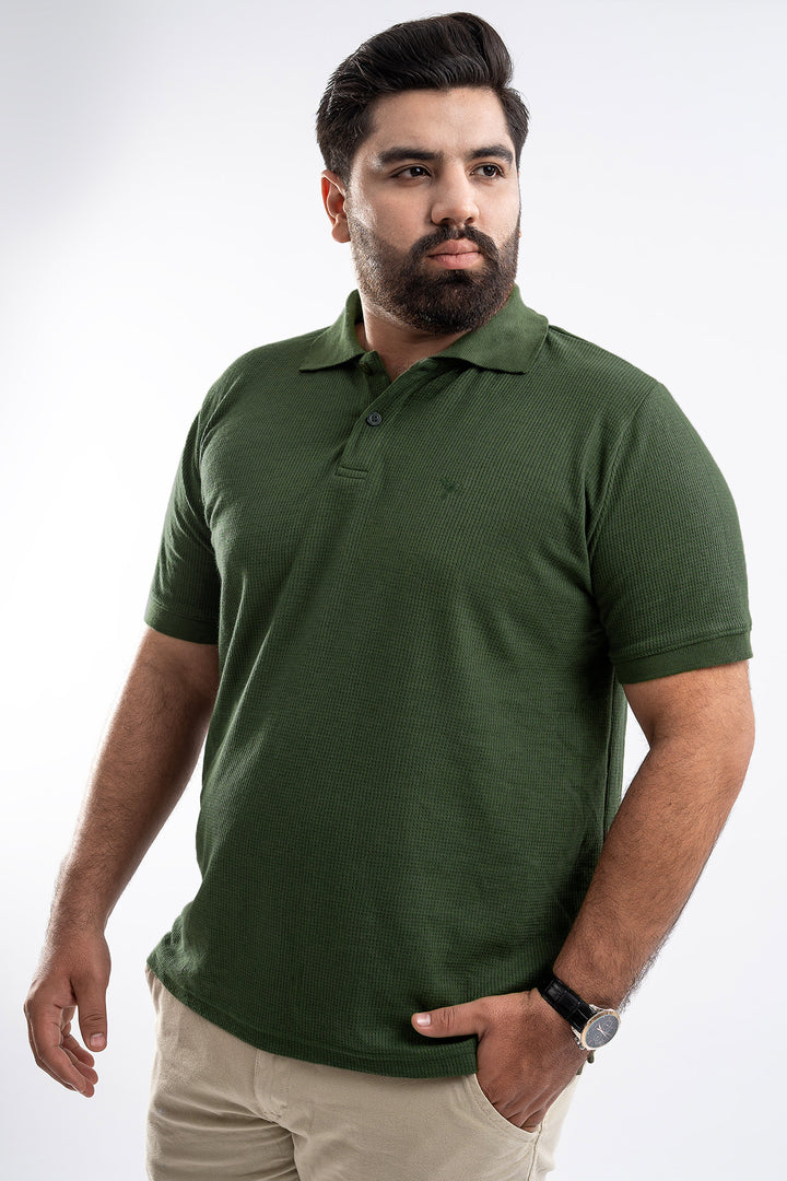 Stay comfortable and stylish all day long in the Olive Waffle Knit Texture Jacquard Polo Shirt. The breathable waffle knit fabric keeps you cool, while the durable construction ensures long-lasting wear. The eye-catching jacquard design adds a touch of personality to your look