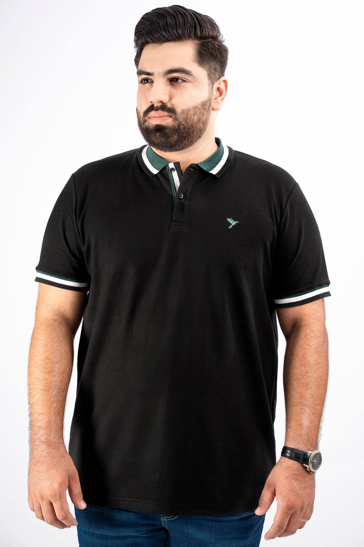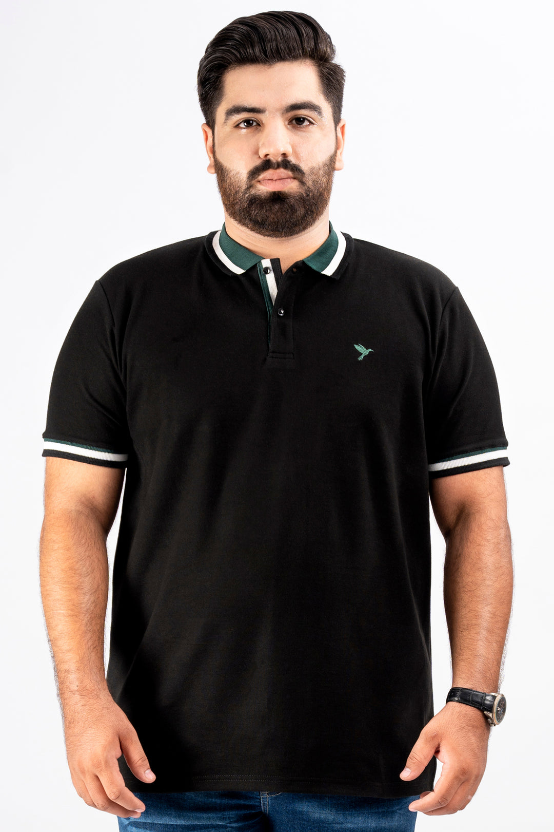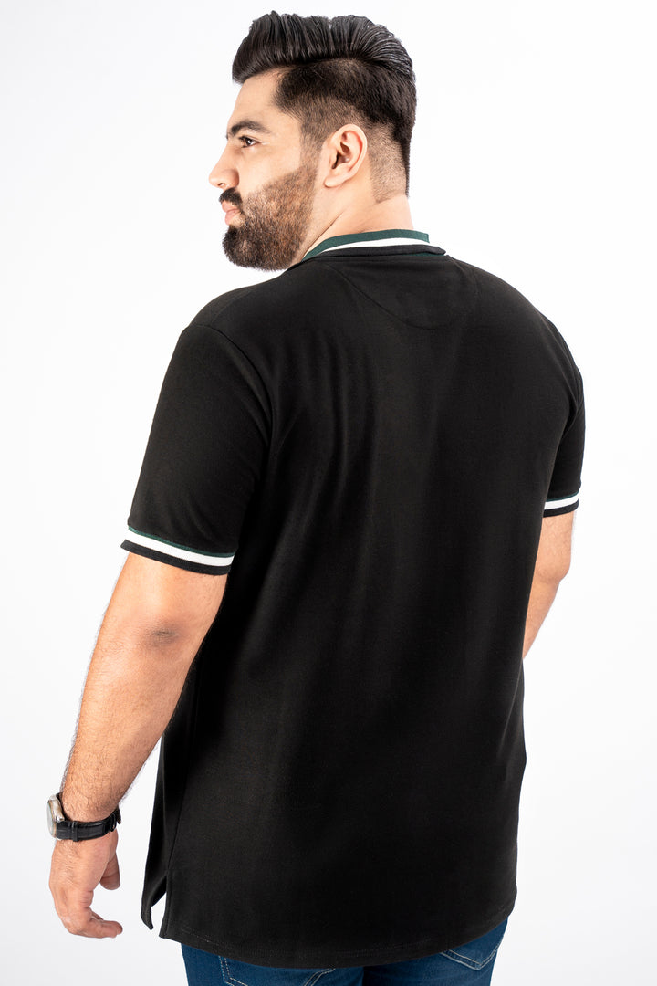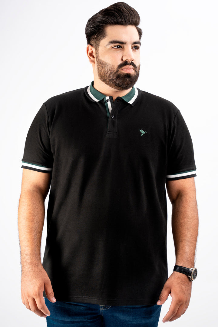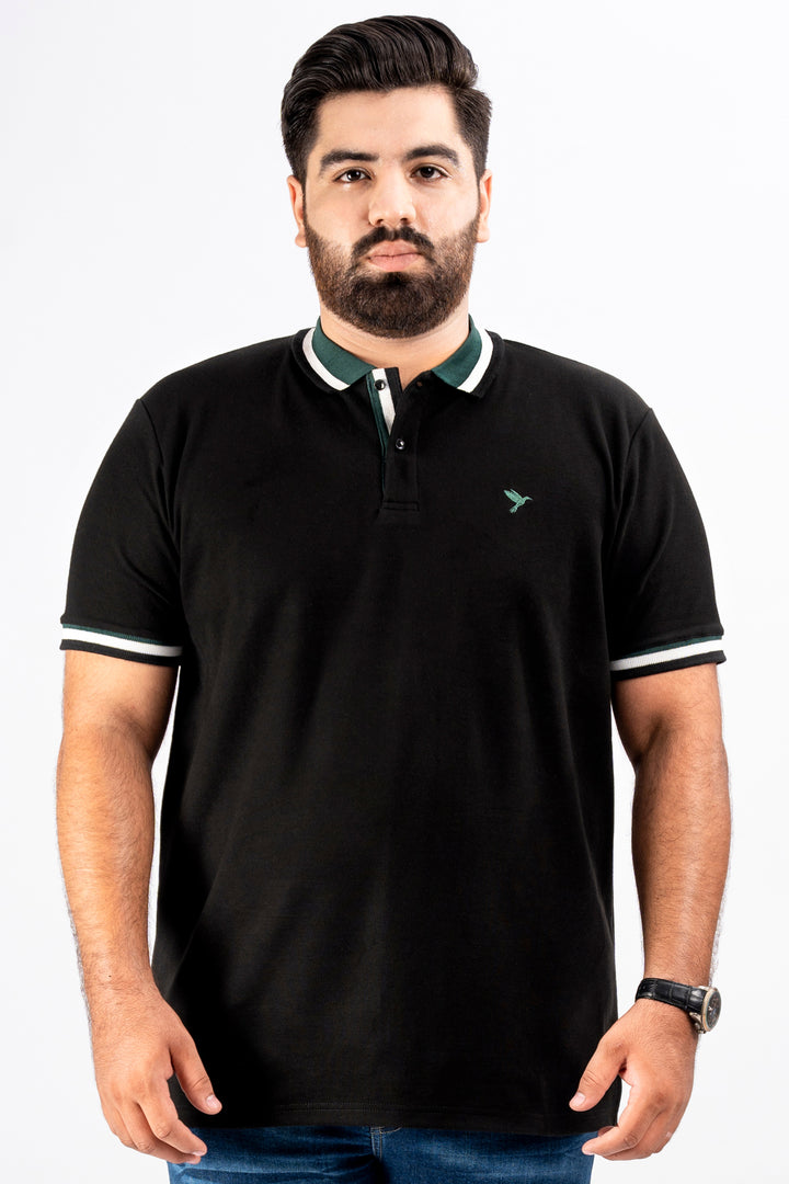 Black & Green Jacquard Collar Polo Shirt (Plus Size) - S25 - MP0325P
