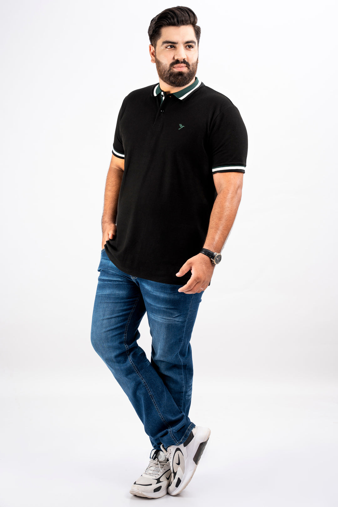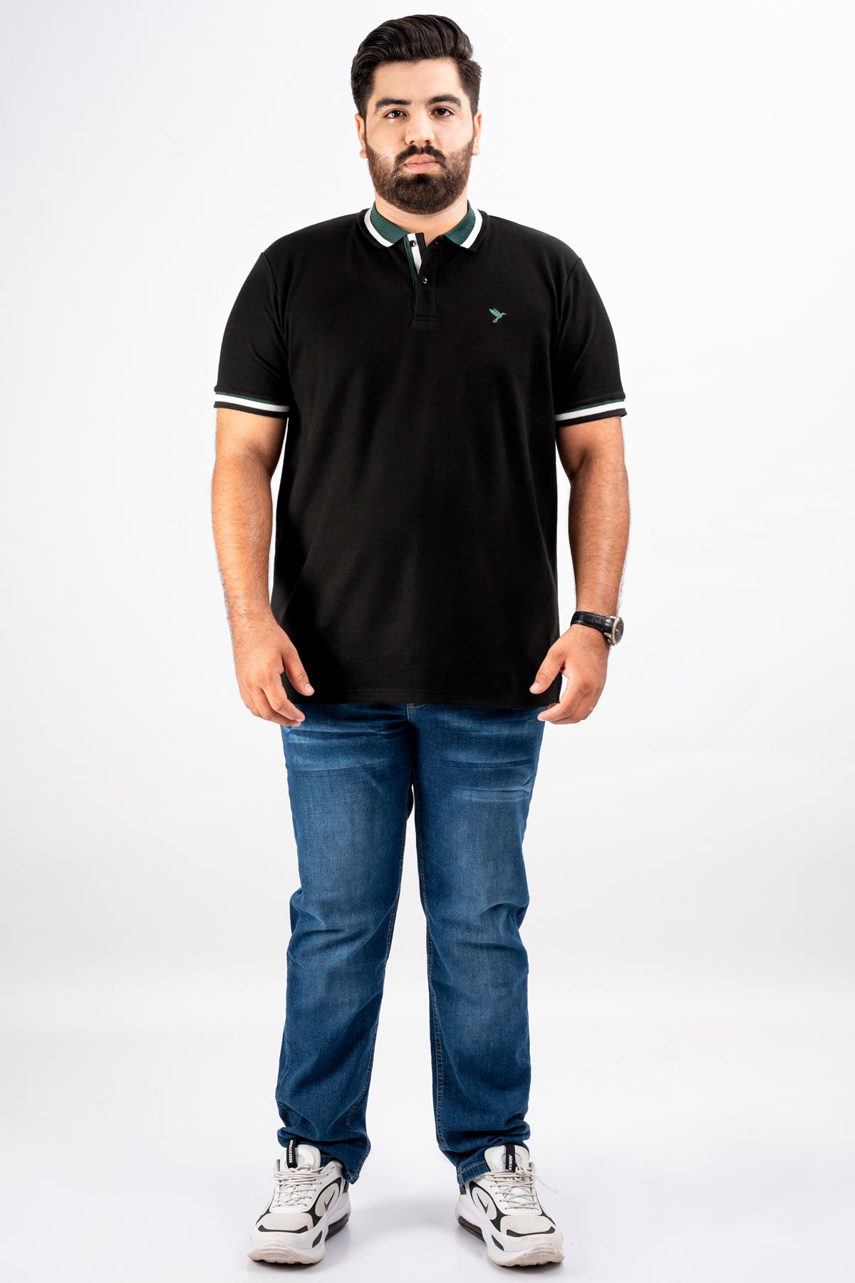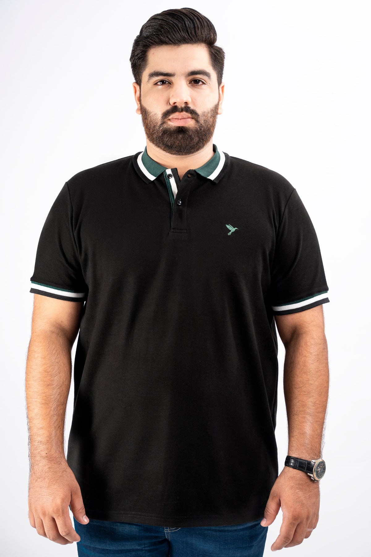 Black & Green Jacquard Collar Polo Shirt (Plus Size) - S25 - MP0325P