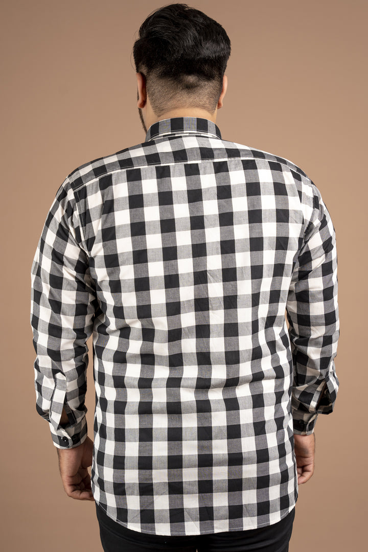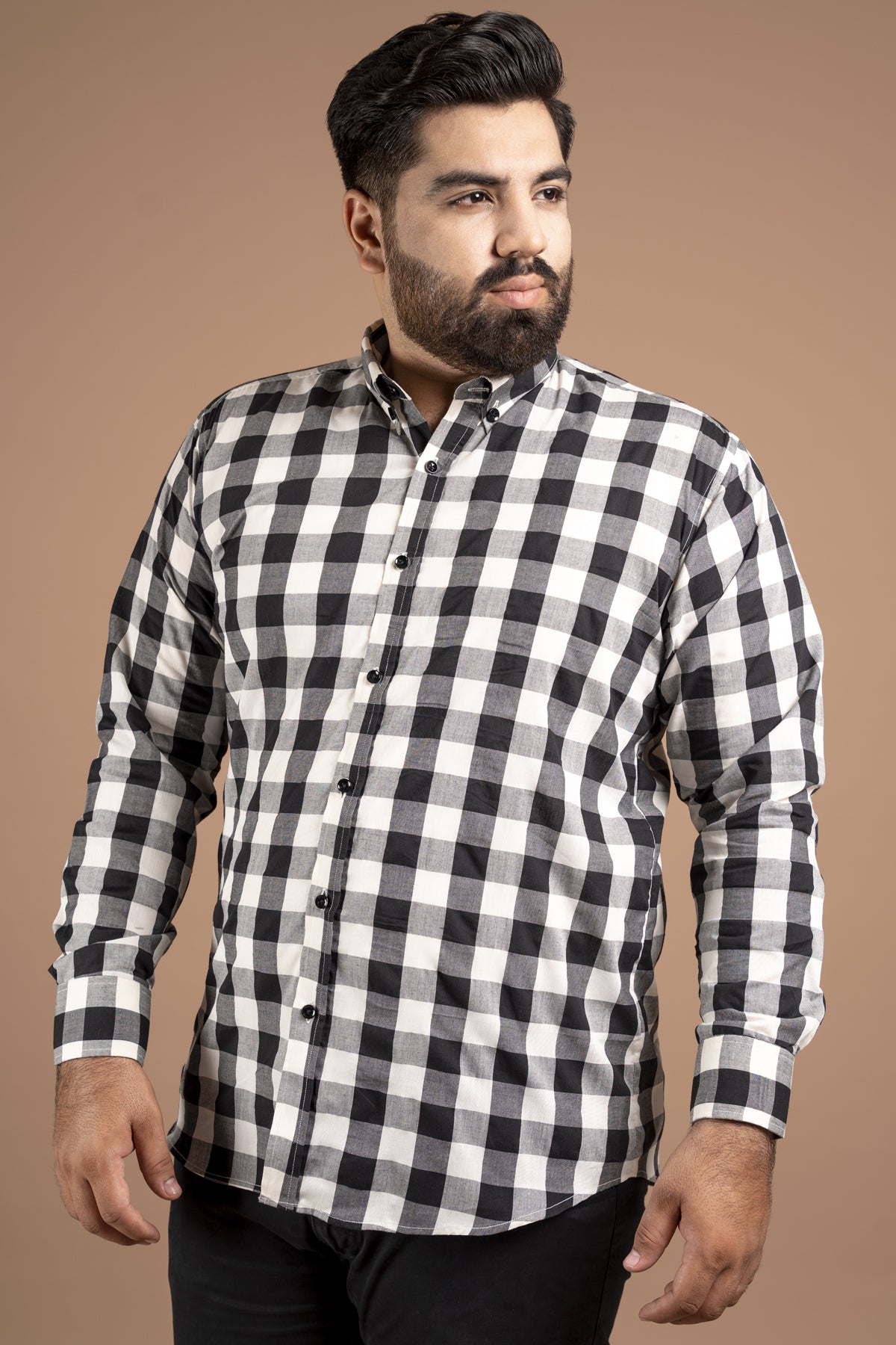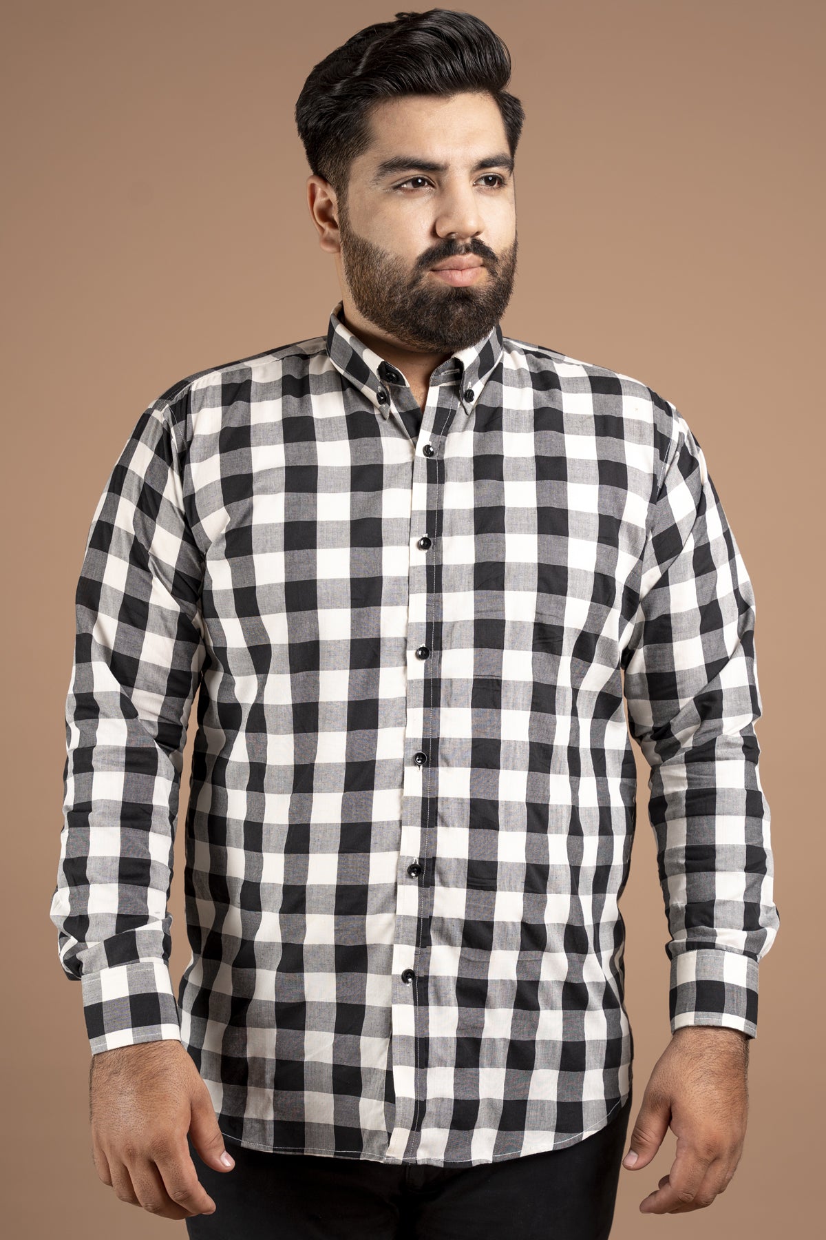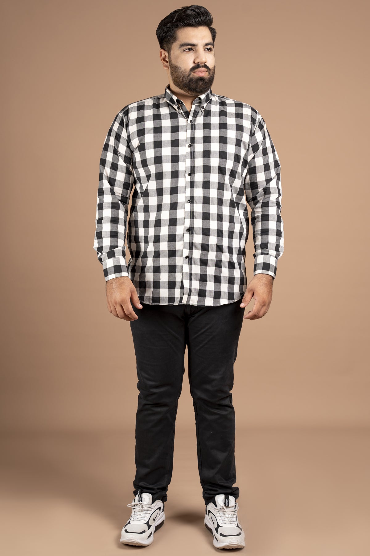 Black & White Cotton Checkered Shirt (Plus Size) - S25 - MS0099P