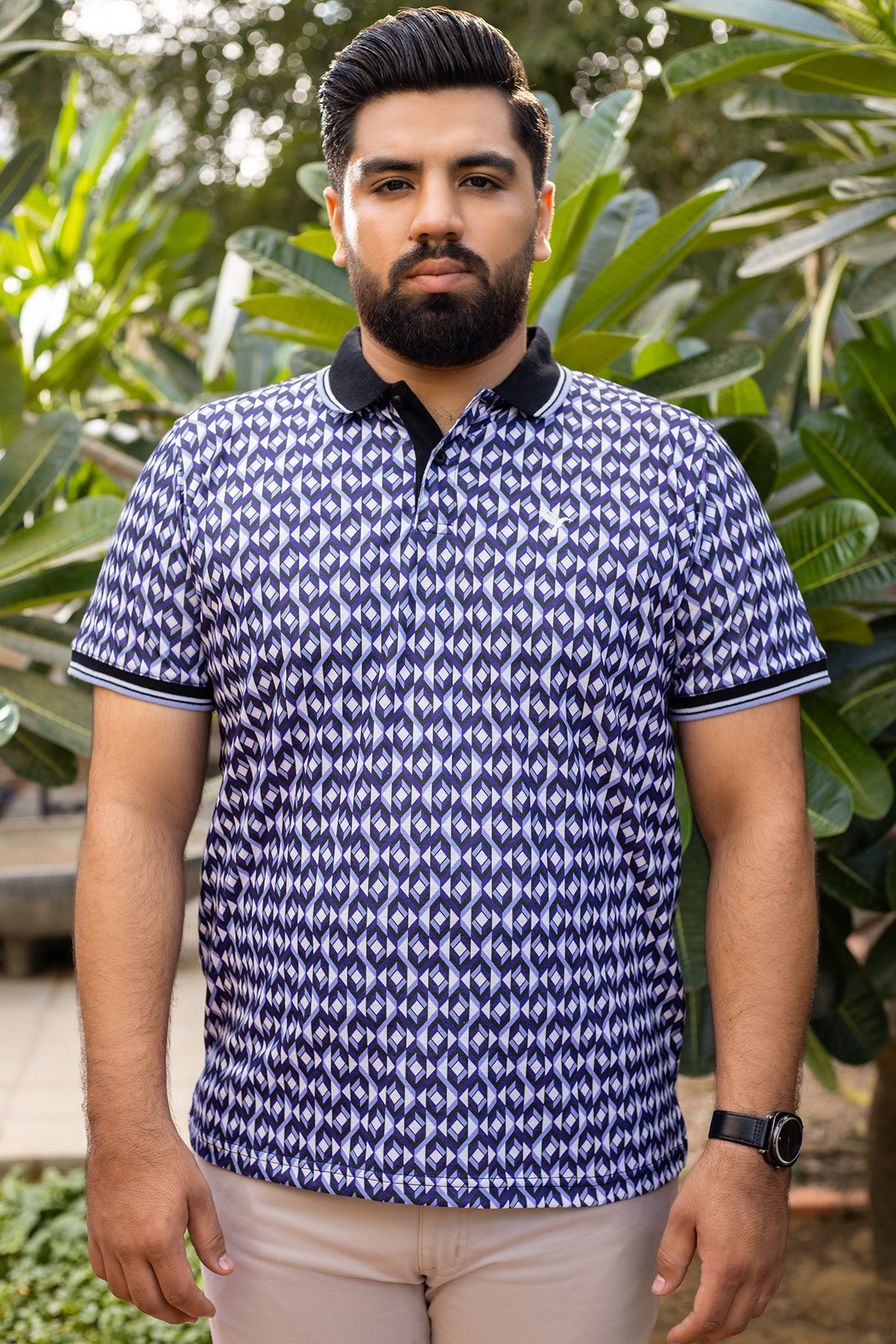 Add a touch of whimsy to your wardrobe with our Blue Abstract Printed Polo Shirt. Made from high-quality fabric, this polo shirt features a playful abstract print that is sure to turn heads. Stay cool and stylish all day long with this unique and comfortable piece. (Get ready to be the talk of the town!)