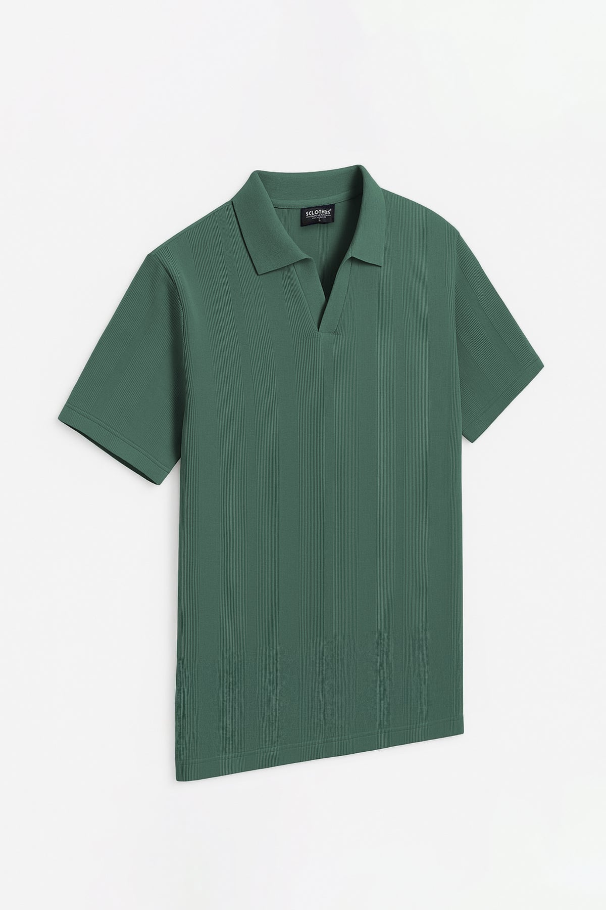 Embrace sophisticated casual with our Textured Jacquard Johnny Collar Polo in Dusty Teal. Crafted from the same unique jacquard fabric, this polo offers a comfortable and relaxed fit, elevated by the distinctive Johnny collar design. The rich dusty teal color and subtle texture add a touch of refined style to your wardrobe.