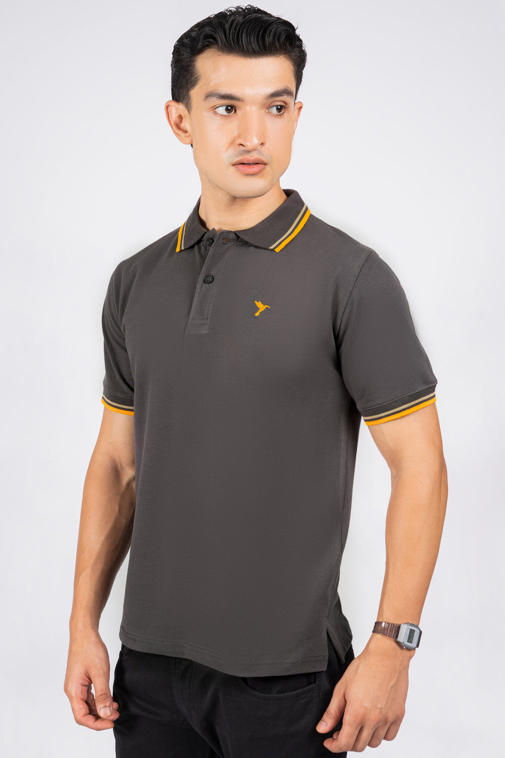 DK Grey & Rust Tipped Collar Polo Shirt - S25 - MP0326R