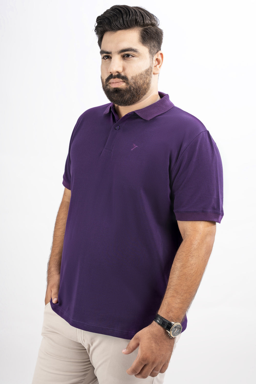 Dark Purple Cotton Pique Embroidered Polo Shirt (Plus Size) - S25 - MP0320P