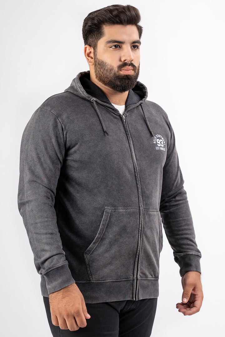 Black Acid Wash Zip Through Hoodie (Plus Size) - S24 - MH0082P