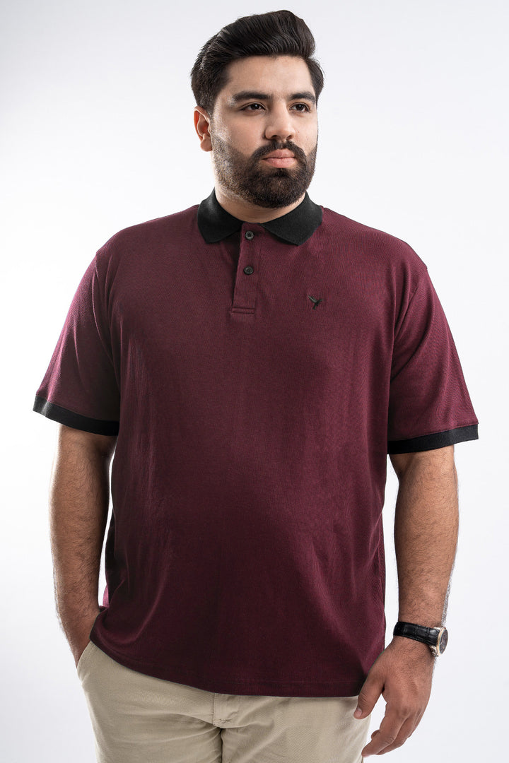 Maroon Ribbed Knitted Polo Shirt (Plus Size) - S25 - MP0281P