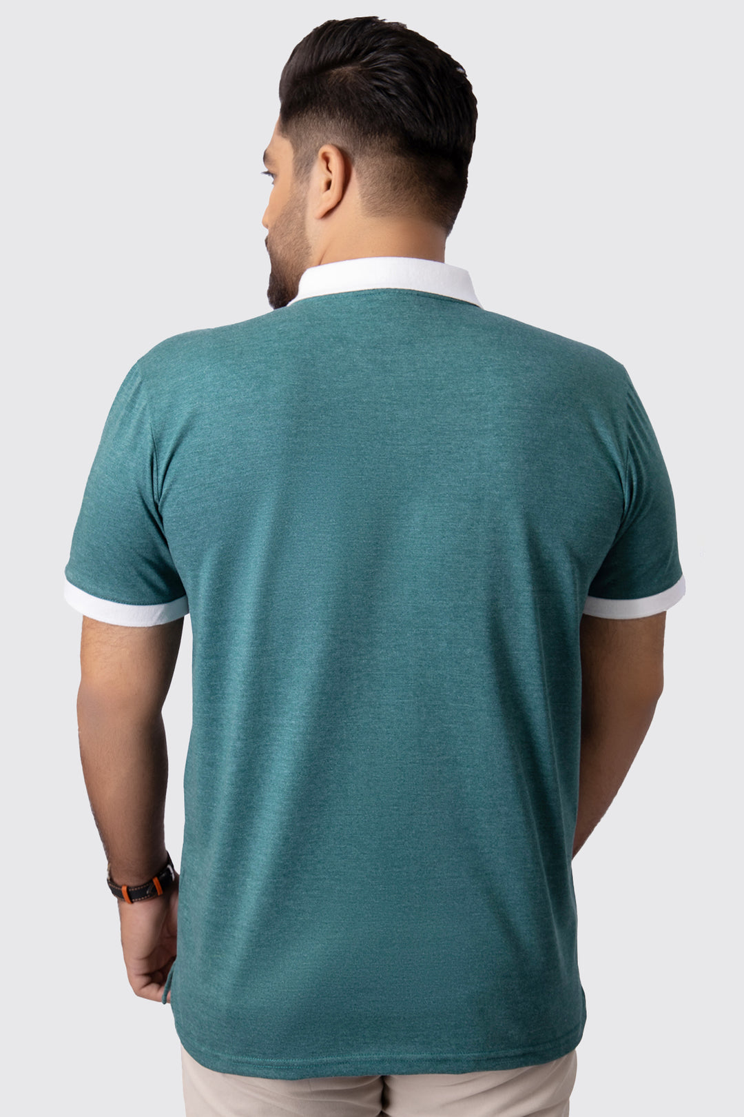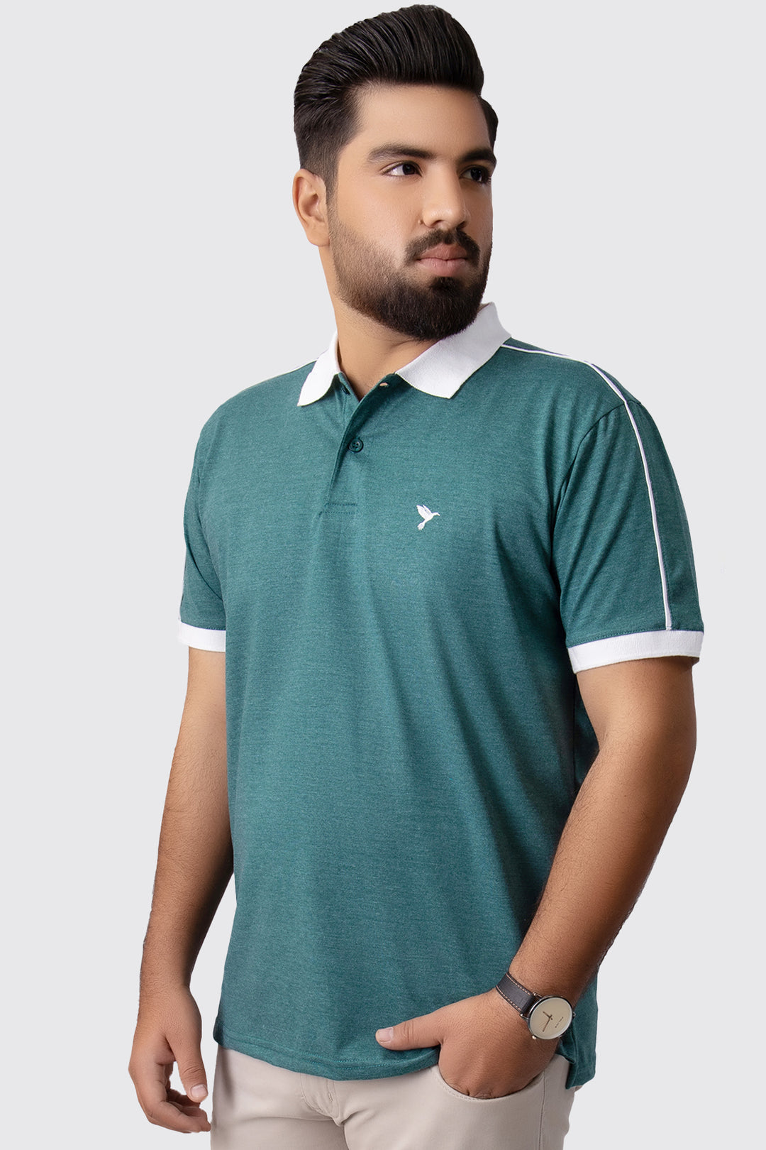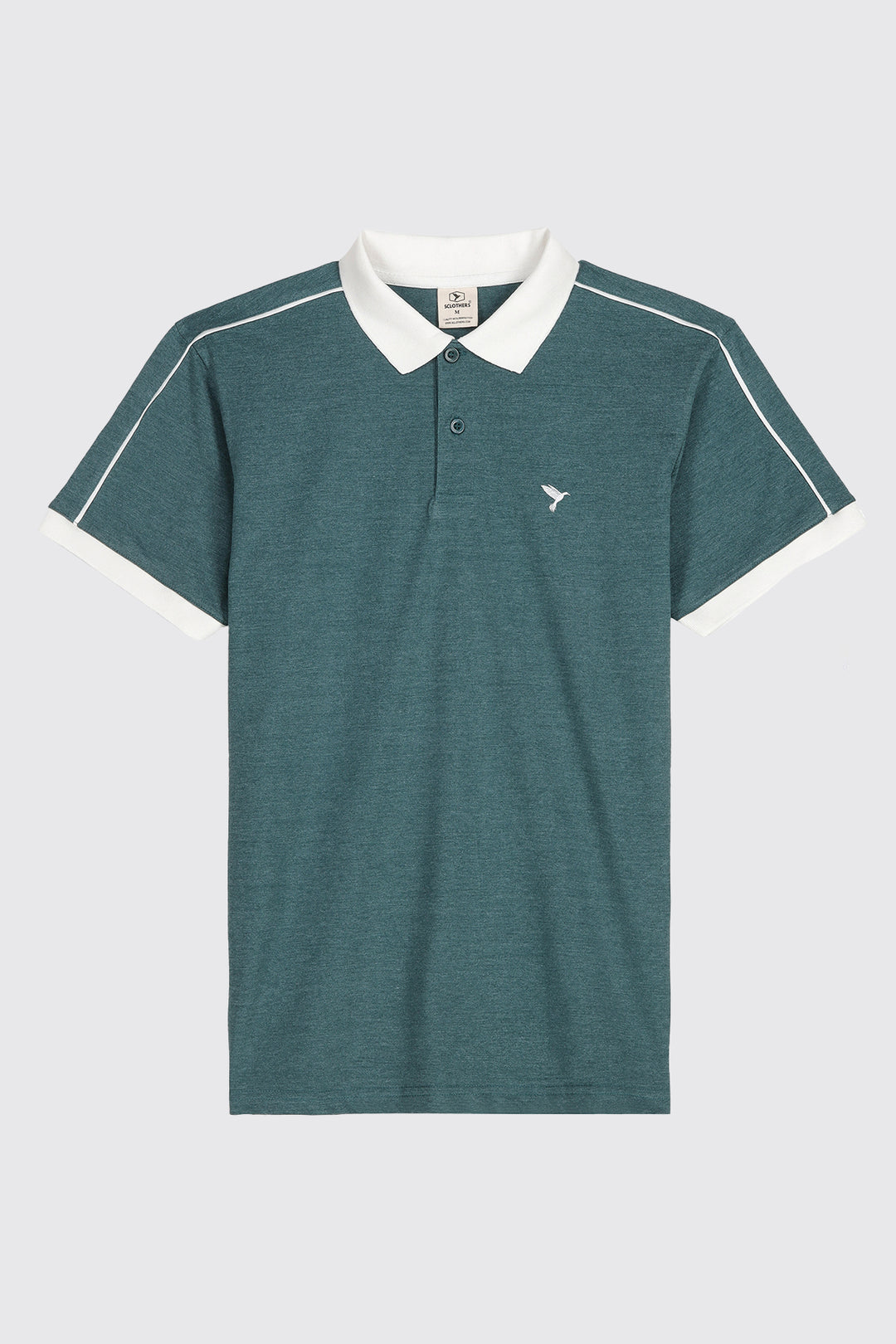 As elegant as it looks, made in premium melange jersey with classic teal and white contrast. it features a bird branding emblem on the front and a contrast rib and collar.