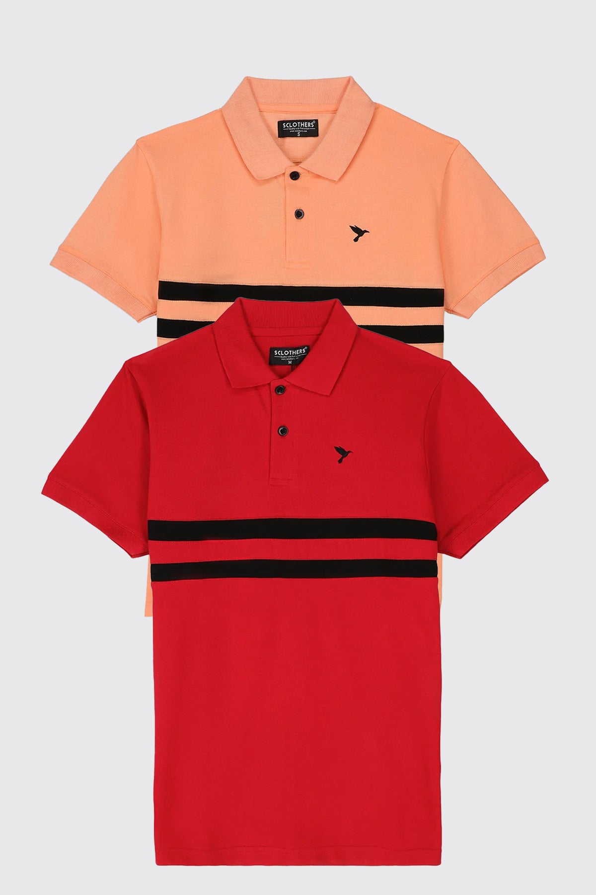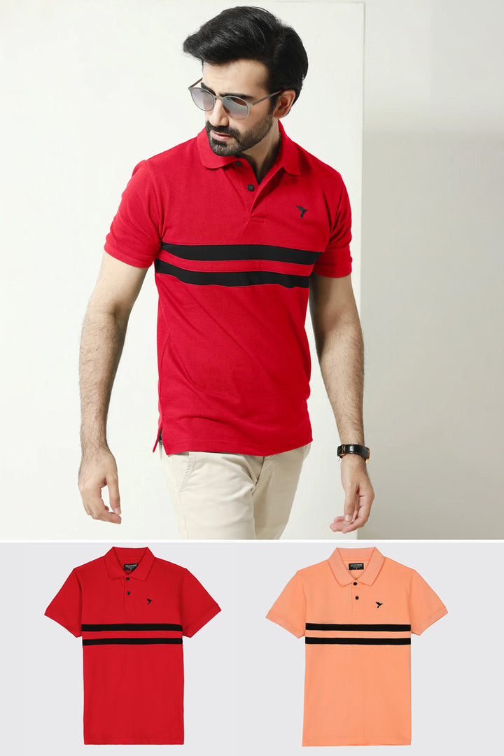 Add some personality to your wardrobe with our pack of 2 polos! Featuring an Orange Contrast Panelled Embroidered Polo Shirt and Red Contrast Panelled Embroidered Polo Shirt, these shirts will make you stand out in style. Perfect for any occasion, these polos are a must-have for any fashion-forward individual. Get yours now!