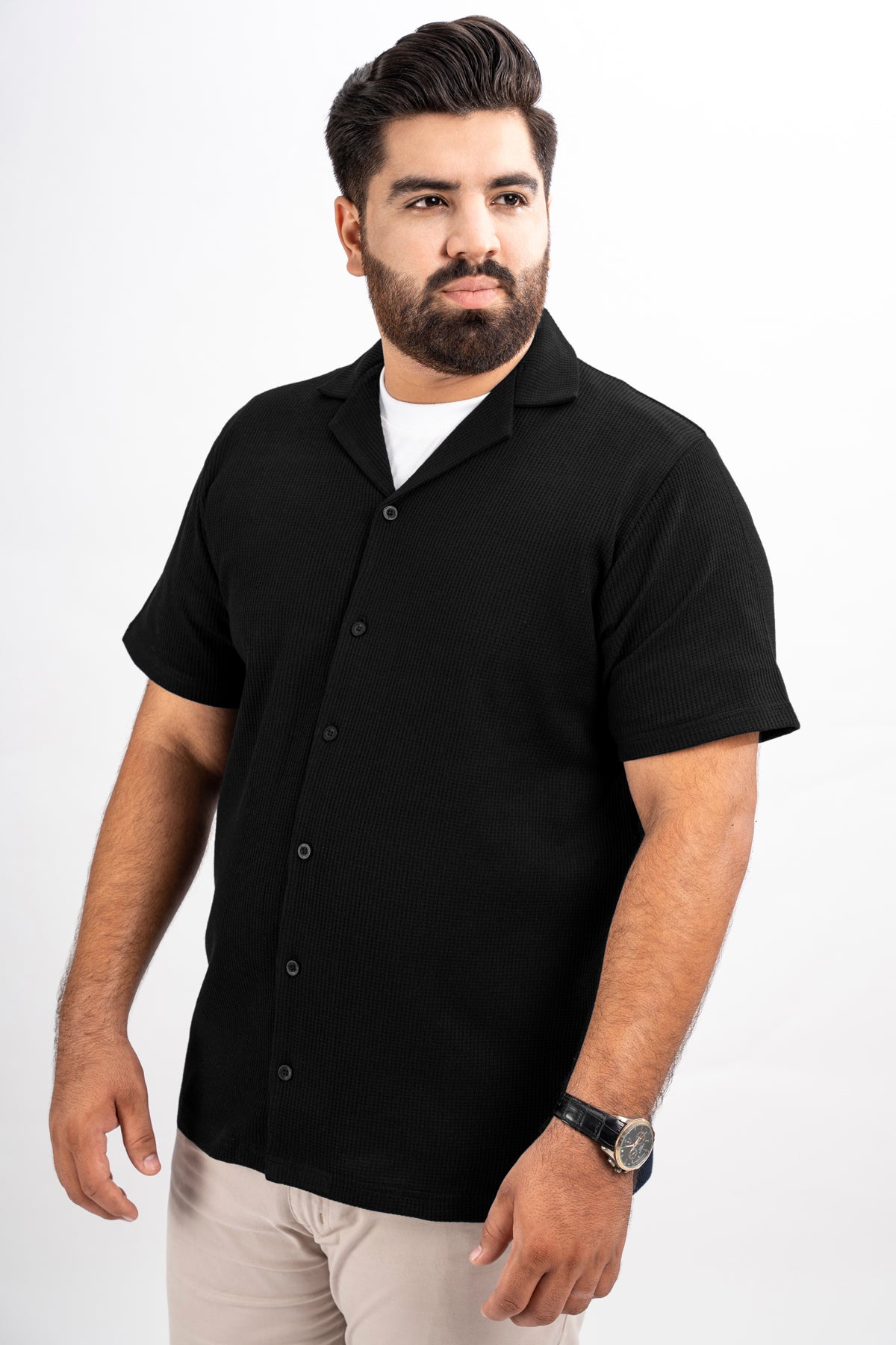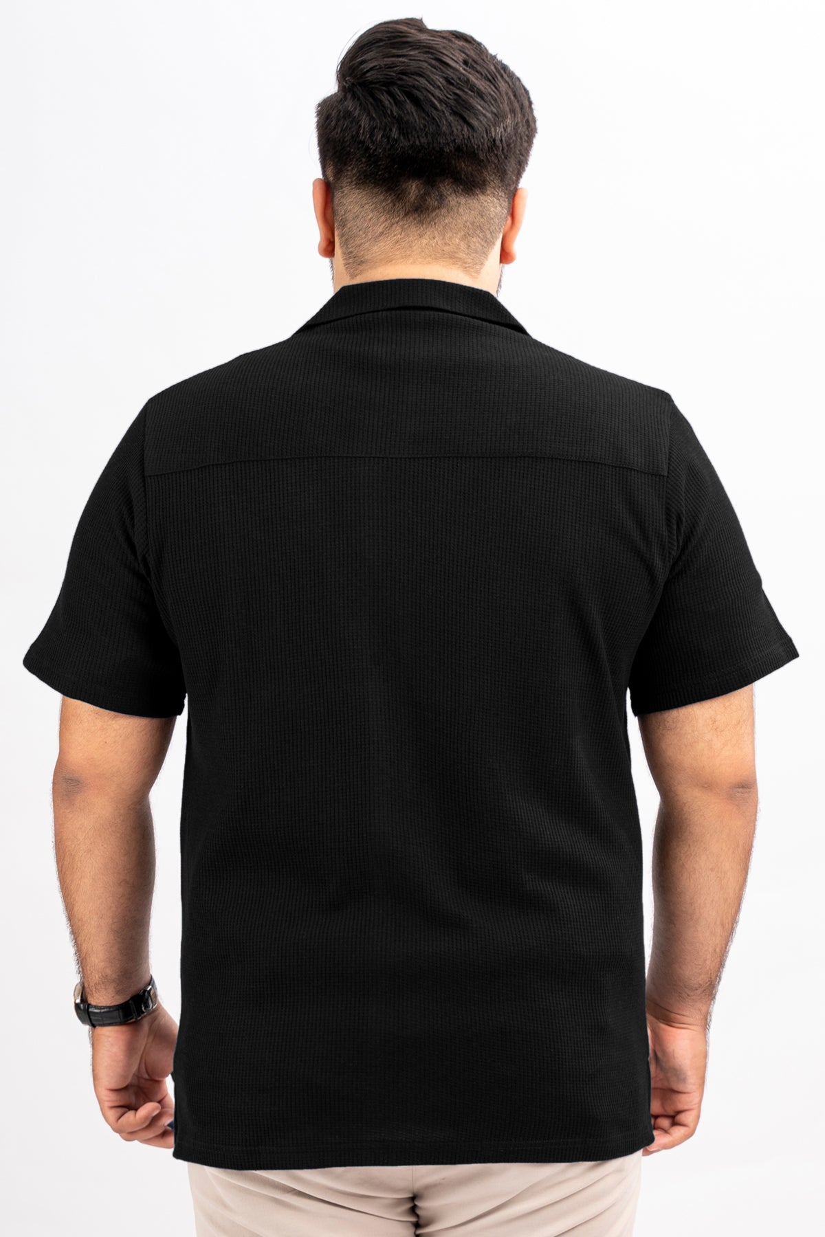 Black Waffle Knit Textured Resort Shirt (Plus Size) - S25 - MS0101P
