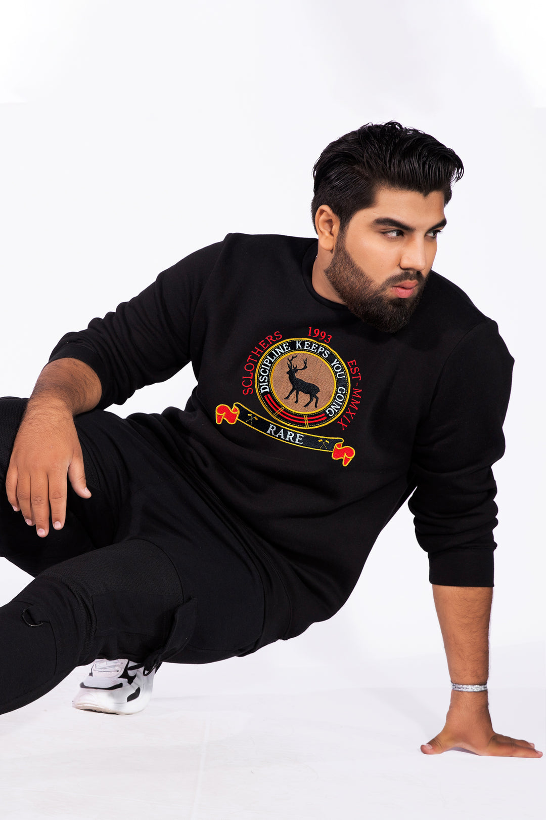 This premium comfortable Rare Discipline Black Sweatshirt is adorned with Sclothers emblem pasted with black color over the chest. Made with super cozy fleece fabric, it guarantees freedom of movement and can be paired with any of your favorite denim.