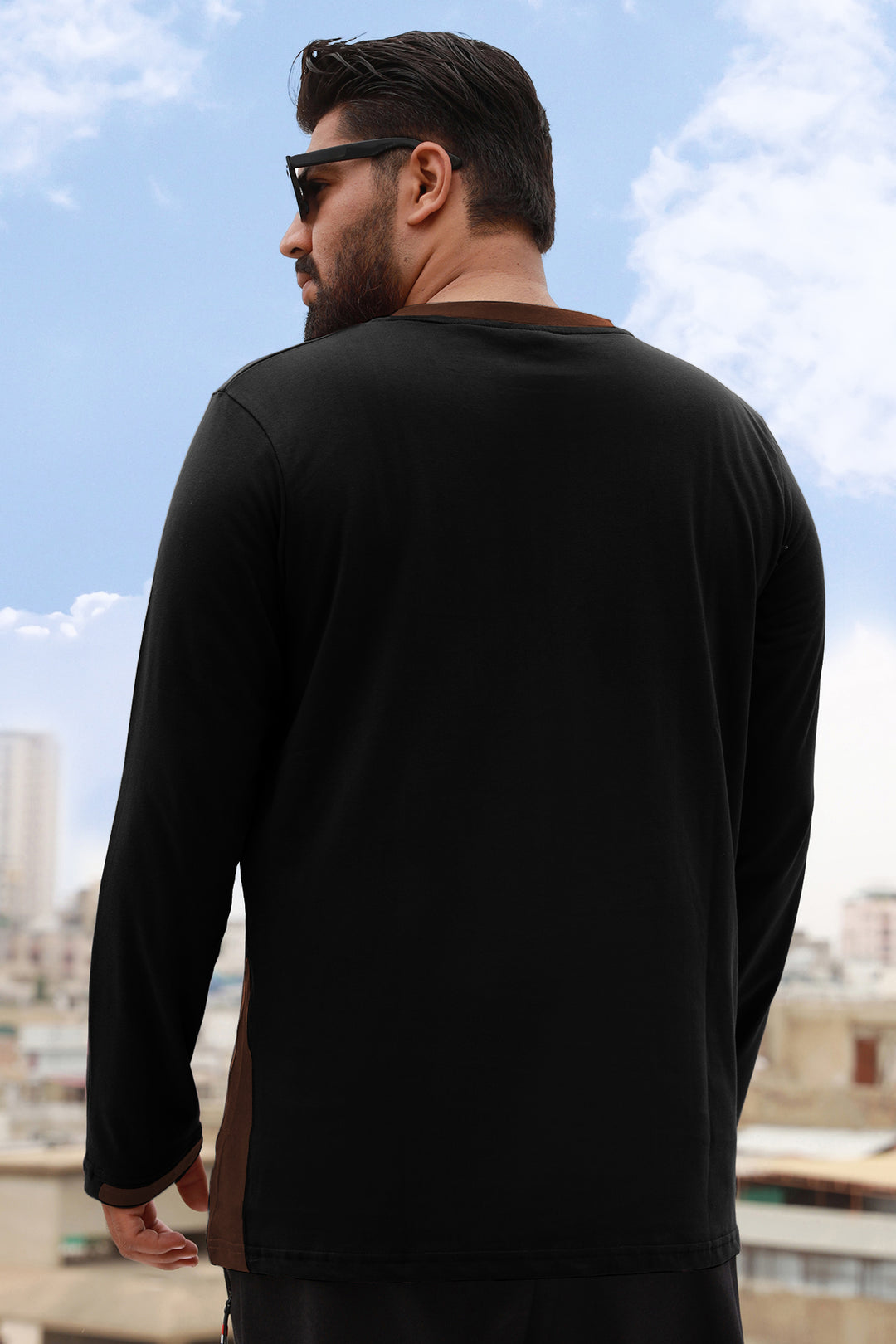 Jet Black Contrast Rib T-Shirt (Plus Size) - W22 - MT0215P