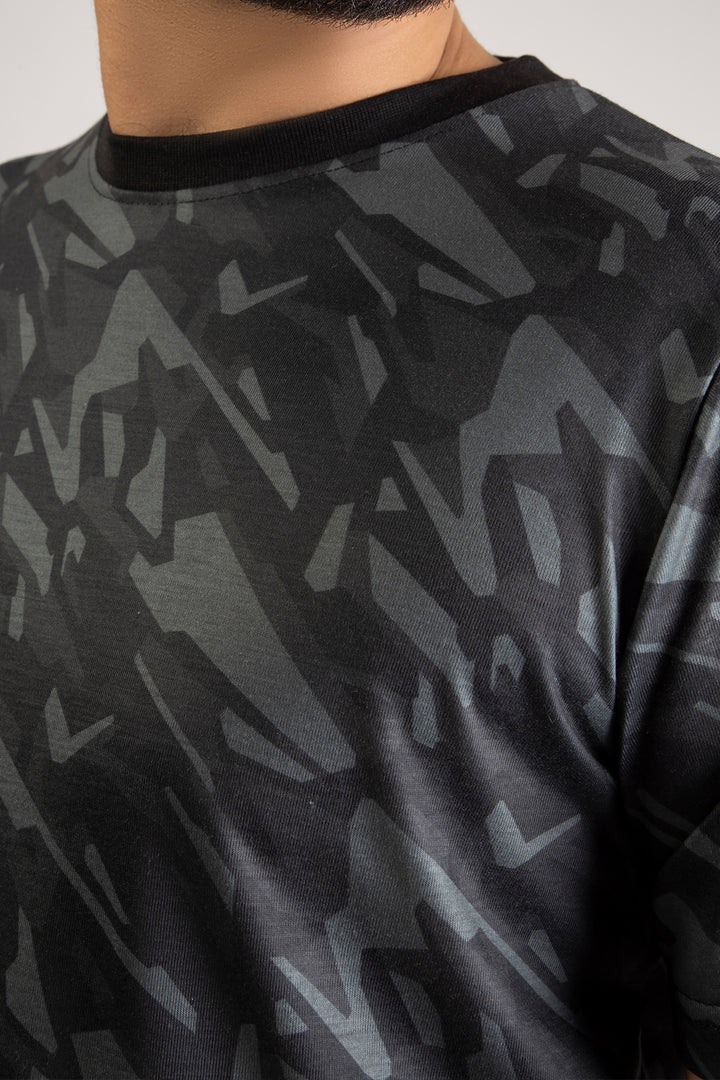 Black & Grey Abstract Printed T-Shirt (Plus size) - A24 - MT0318P