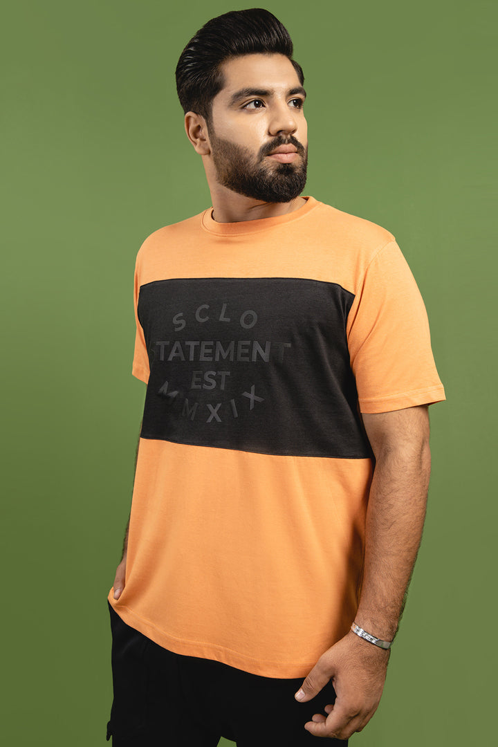 Casual clothing with a chic twist? It is a perfect summer-essential wardrobe staple with a classy contrast of Orange and Black. It is made with premium jersey and made to perfection with the cut and sew detailing on the front with print emphasis. It features a crew neckline with rib detail and half sleeves.