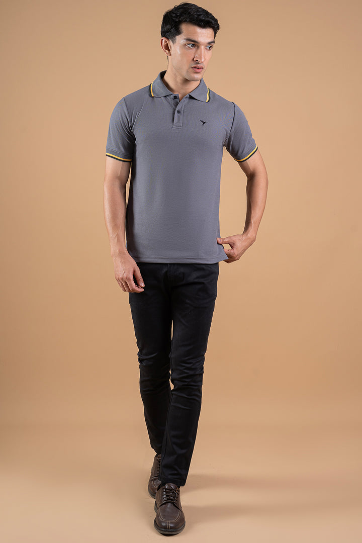 Wear your style and own it like a boss with our Trout Gray Tipped Collar Polo Shirt featuring contrasting yarn dyed collar tipping and bird emblem. Just an ideal choice for the stylish persona.
