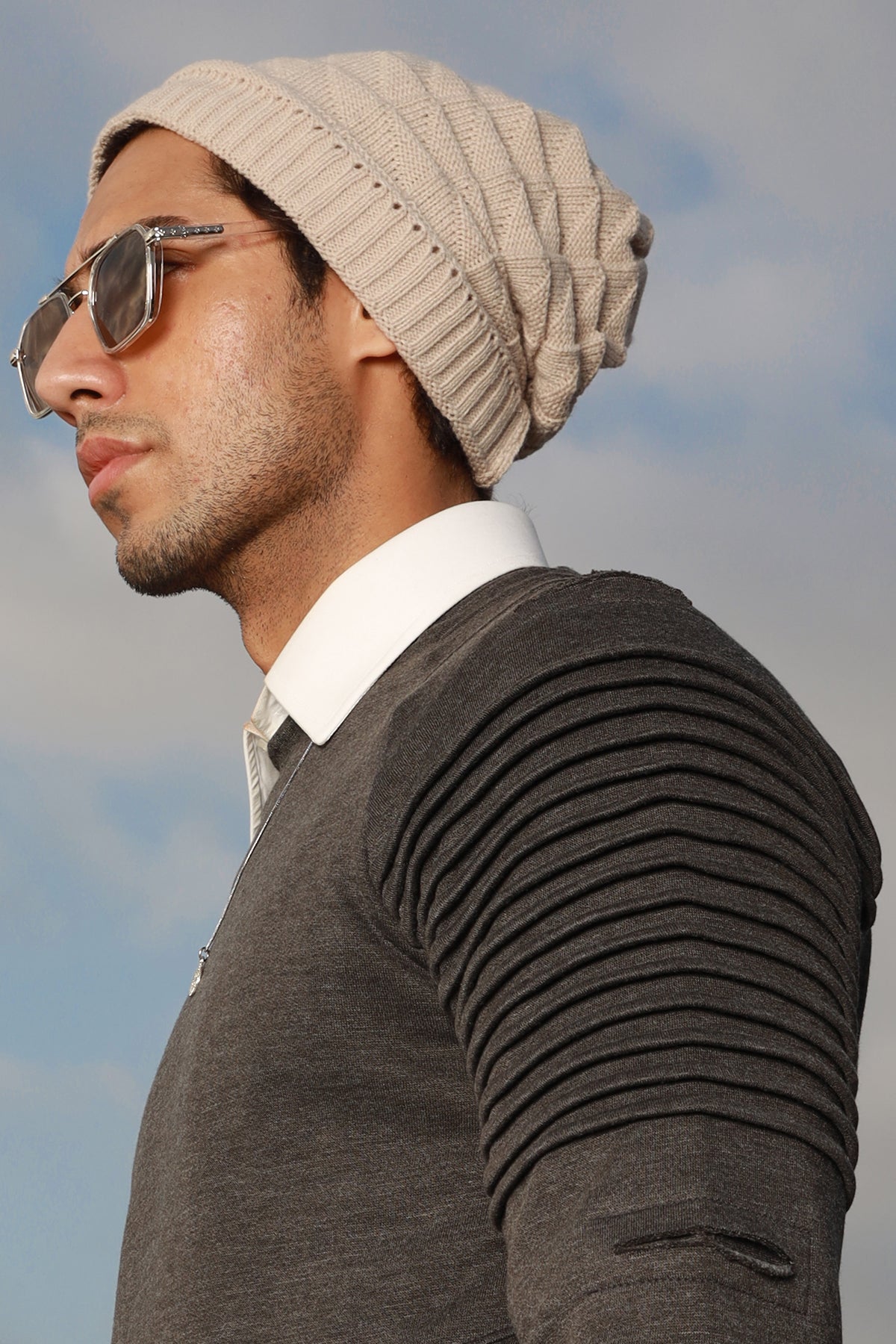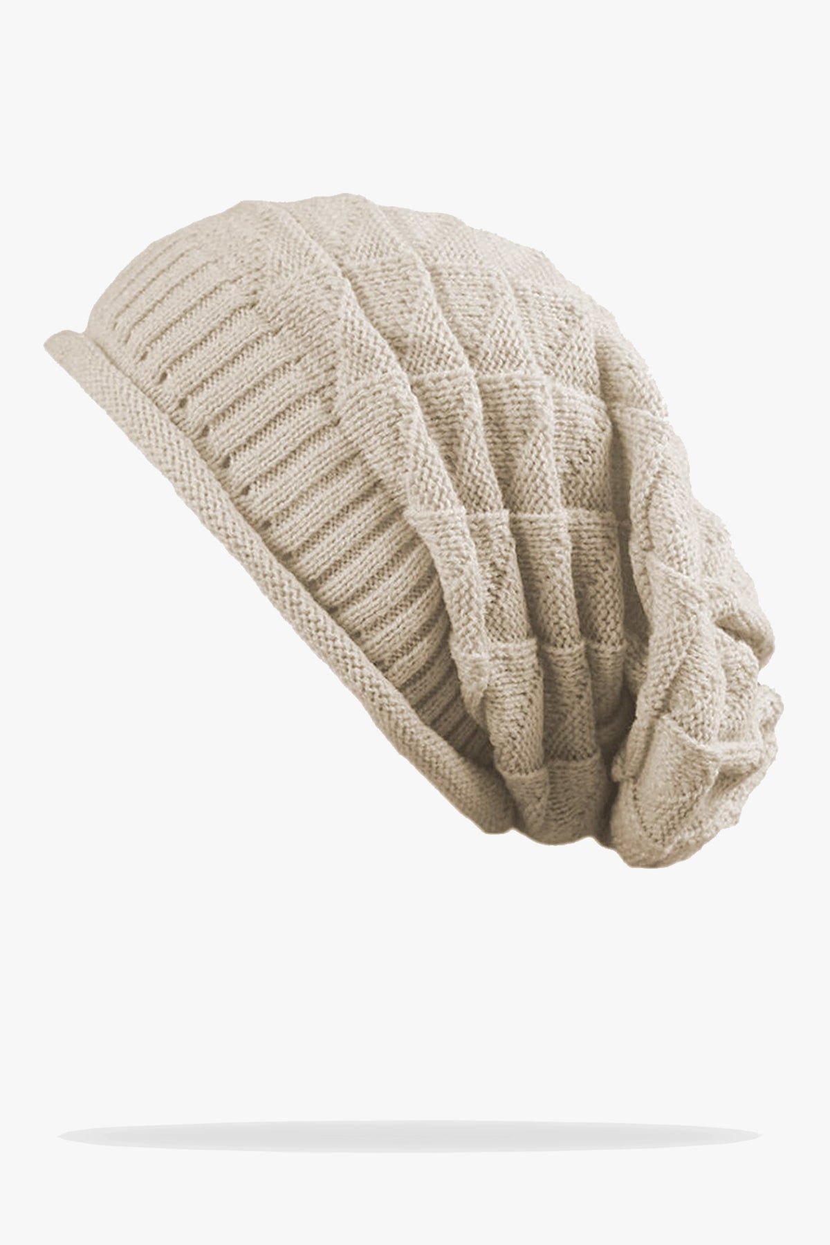 This Beige Knitted Baggy Beanie is the perfect accessory for cold weather. It's made with a sturdy knitted fabric and features a classic beanie design with a baggy fit for extra comfort. The beige color adds an elegant look that can be paired with any outfit.