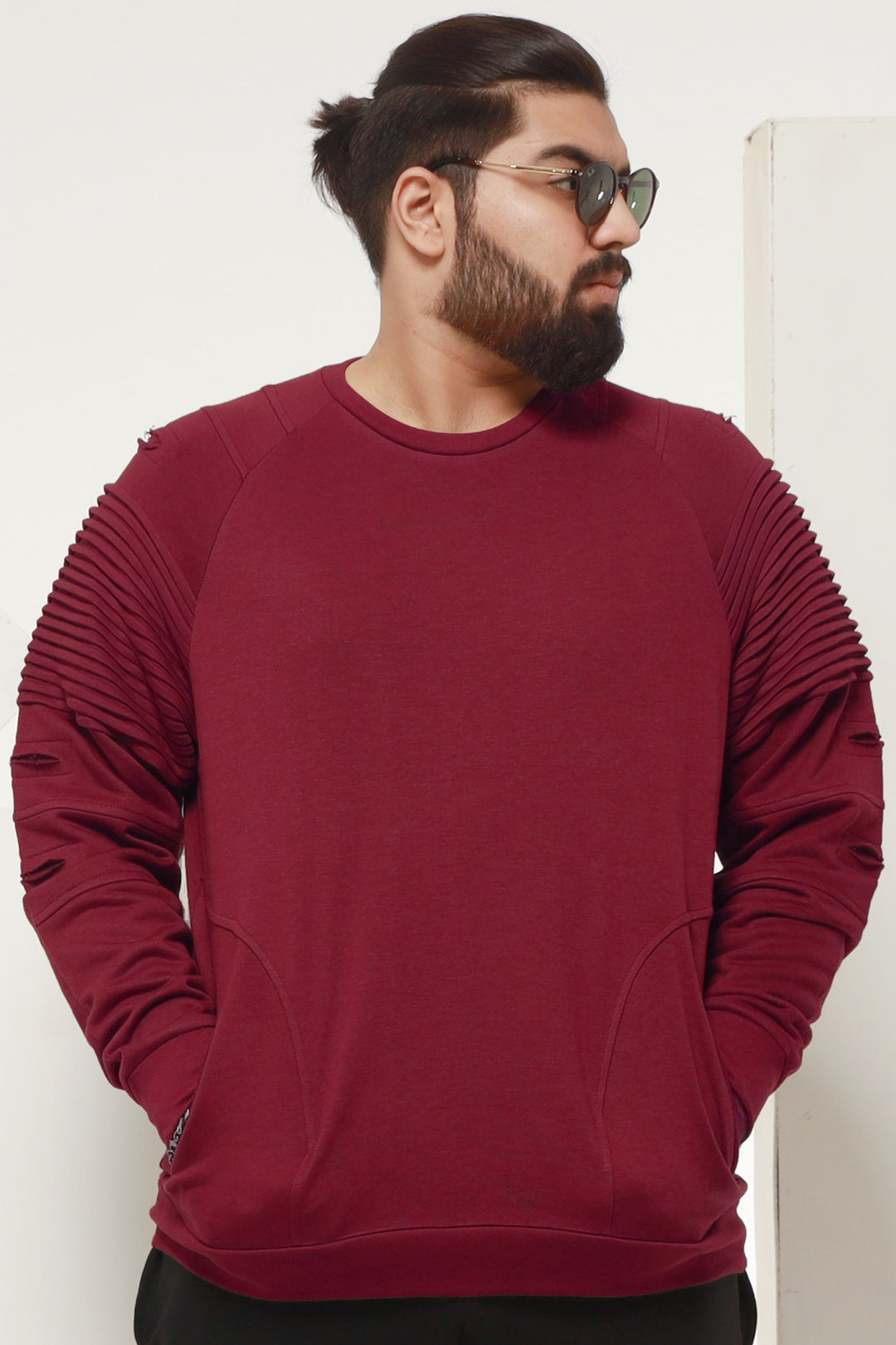 Maroon Pleated Raglan Sweatshirt (Plus Size) - W22 - USW006P